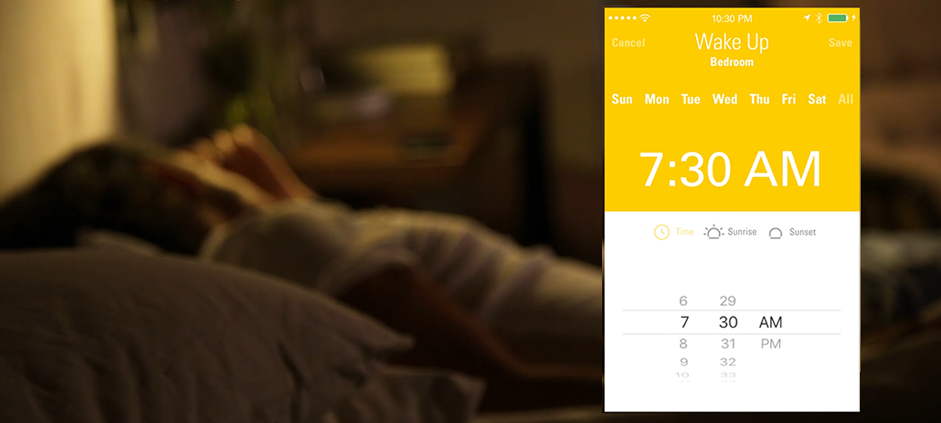 Programa cada cortina para que se accione automáticamente de forma individual o en grupo; definiendo días y horas específicos. También podrás ajustar tus cortinas para que se abran o cierren justo al amanecer o atardecer, calculados de forma precisa por PowerViewTM en base a la geolocalización específica de tus habitaciones.
